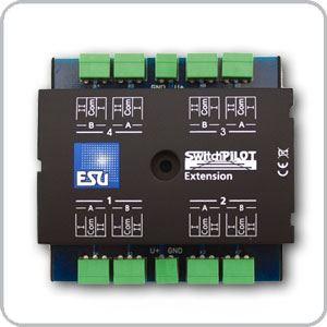 Der SwitchPilot kann bei Bedarf um das SwitchPilot Extension Modul ergänzt werden: Seitlich angedockt an den SwitchPilot bietet es 4 Relaisausgänge zum Schalten von potentialfreien Verbrauchern oder zur Herzstückpolarisierung.