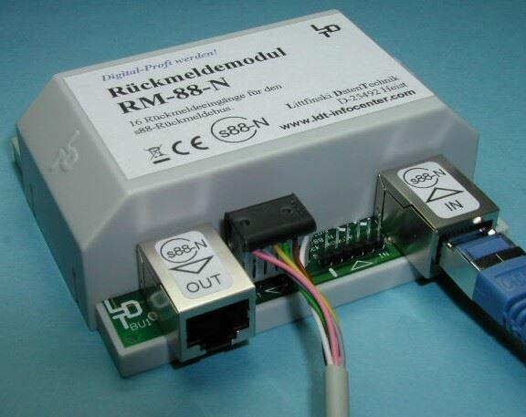 Das Rückmeldmeldemodul RM-88-N ist für s88-Standardverbindungen mit 6-poligen Stiftleisten und für Busverbindungen nach mit geschirmten RJ-45 Buchsen ausgestattet. Zum Anschluss an Digitalzentrale...