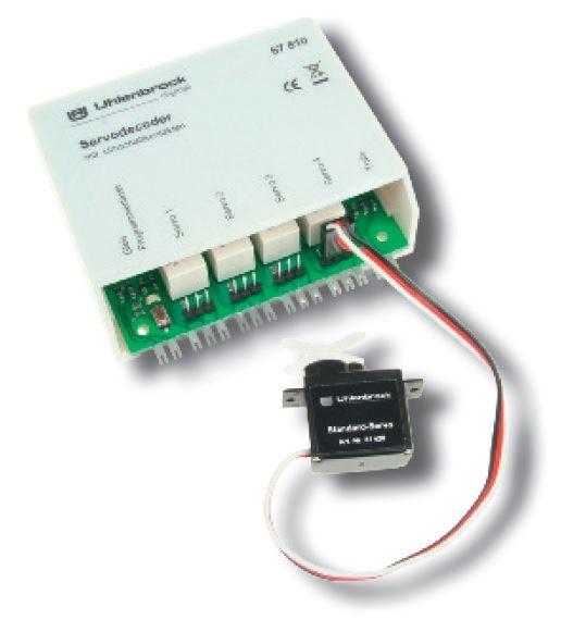 An dem Servodecoder lassen sich die im RC-Modellbau bekannten Servos anschließen und bilden damit die leise und preiswerte Basis für jeden Antrieb. Die damit für den Modellbahner nutzbaren Servoantriebe stellen Weichen, Signale und Schranken an Bahnübergängen, bewegen einen Wasserkran oder öffnen und schließen Tore.