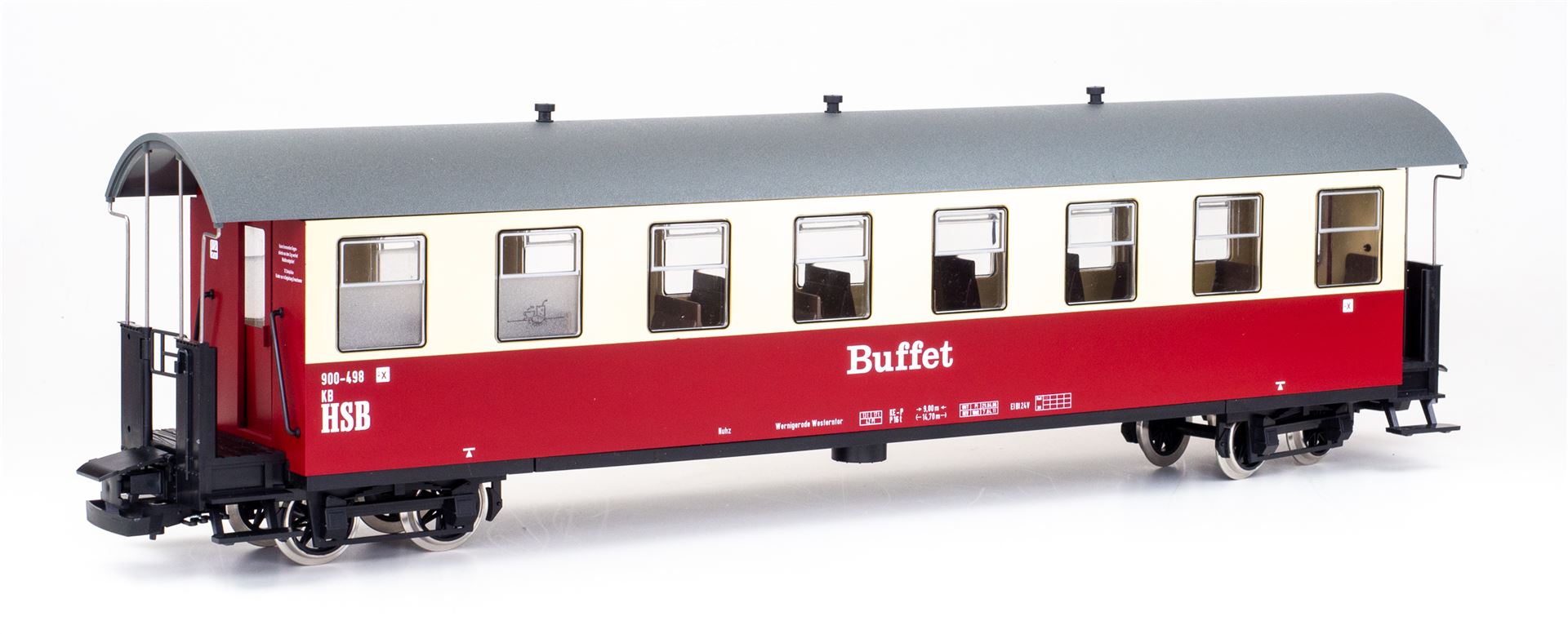 G HSB Personenwagen 8 Fenster, 900-498 "Buffet" HSB BUFFET Wagen 900-498 (LüP 620mm) Die HSB hat zwei Buffet-Wagen im Einsatz. Der Wagen mit der Betriebsnummer 900-498 ist neu 2015 im Train Li...