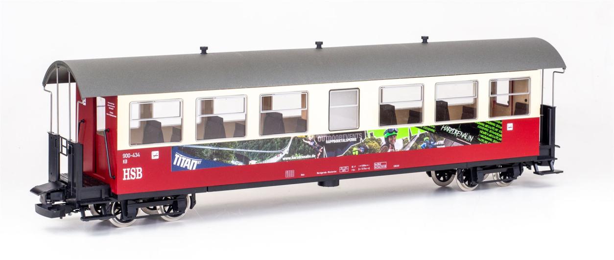 G HSB Personenwagen 900-434, "Harzdrenalin 2019" Länge über Puffer (LüP): 600mm Lieferumfang: Beipacktüte(2x Kupplungshaken/ 2x Bolzen/ 2x Bremskurbel) Maßstab: 1:22,5 Spurweite: 45 mm Herstelle...