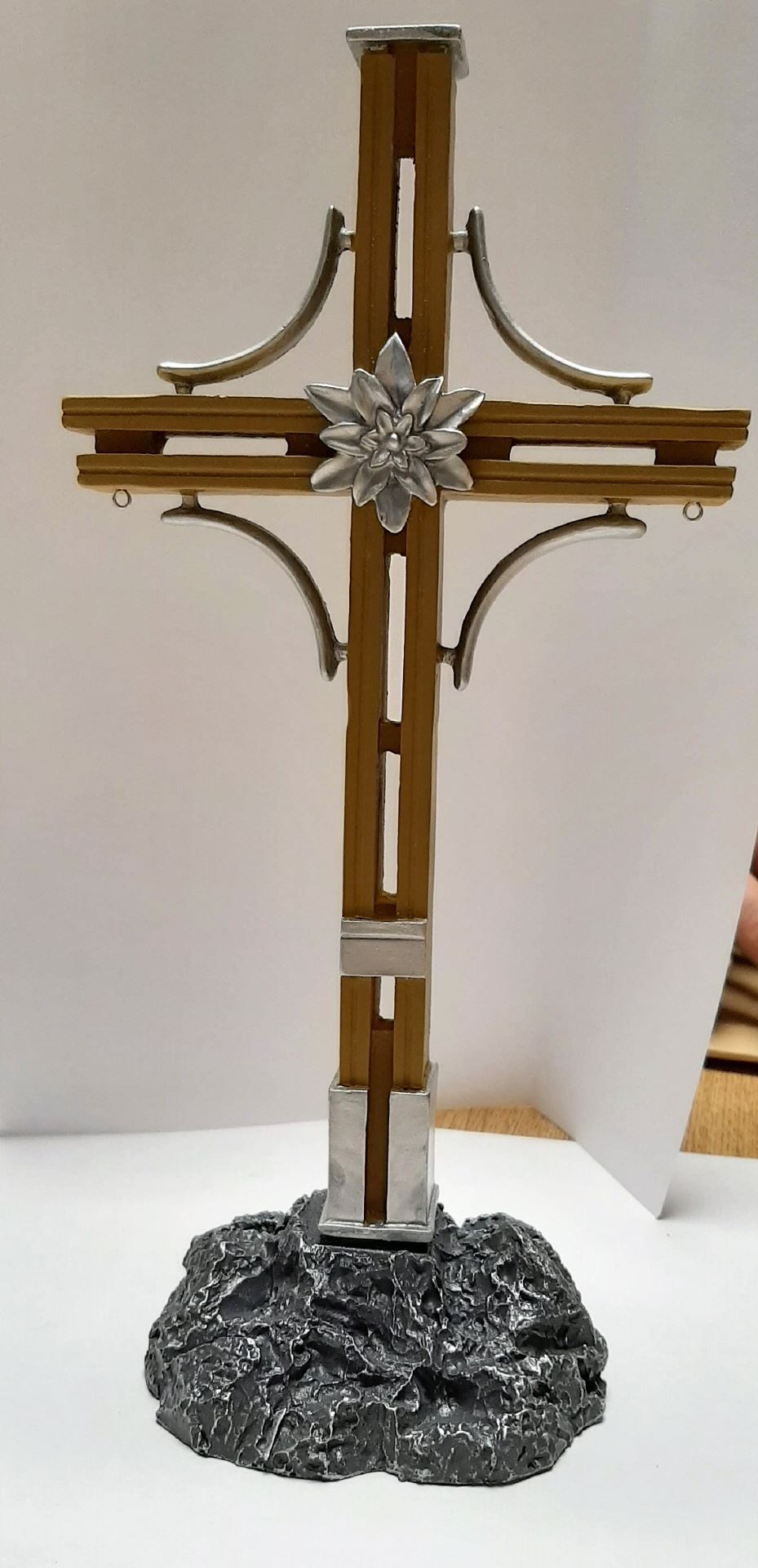 Wir wissen, was auf der Anlage fehlt. Neu ist das Gipfelkreuz mit dem stattlichen Maß von ca. 25cm Höhe, aus unzerbrechlichem Resin, bemalt mit UV beständigen Farben. In Holzstruktur mit einem Stück Felsen als Sockel ist das Modell ein echter Hingucker.