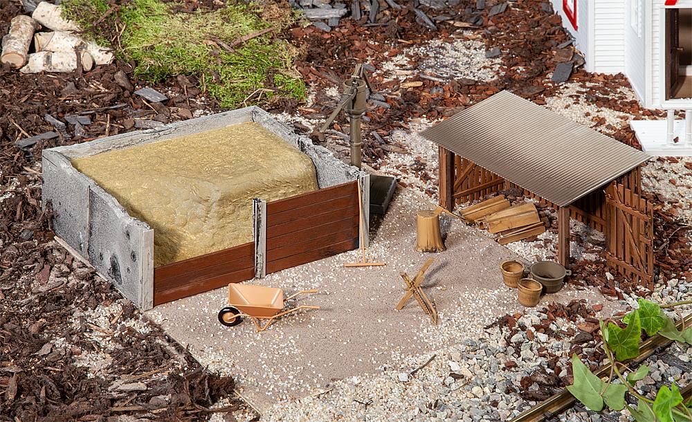 G Landwirtschaftliches Zubehör Zubehör-Set bestehend aus einem Brennholzlager, einem Holzstapel, passendem Werkzeug, Misthaufen, Jauchepumpe, u.v.m. Maße Holzlege: 160 x 95 x 94 mm Maße Misthaufe...