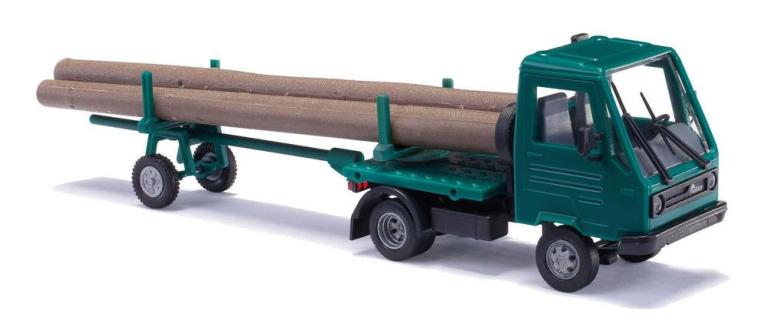 Der Mobilkran TIH 445 wurde zunächst als T 159 (auch MDK 16) im VEB (Volkseigener Betrieb) Landmaschinenbau »Rotes Banner« im sächsischen Döbeln ab 1970 entwickelt. Das selbstfahrende und luftbereifte Arbeitsgerät T 159 hatte Vorderradantrieb und Hecklenkung. Die leicht schräg wirkende Fahrerhauskabine ist zwischen Vorder- und Hinterachse aufgebaut und der Antriebsmotor ist über der Lenkachse angeordnet, während über der vorderen Achse eine Dreheinrichtung für den Ausleger aufgebaut wurde. Die notwendigen klappbaren Abstützungen des T 159 sind hinter den Vorderachsen montiert. Wie so viele Fahrzeuge der DDR bedient sich auch der T 159 aus dem bewährten Baukasten-System. So stammen die beiden Achsen sowie die Lenkung mit hydraulischer Lenkkraftverstärkung vom LKW IFA W50. Der Hauptausleger ist auf einem Drehkranz aus einer Doppelreihe Stahlkugeln aufgebaut, die Drehung erfolgt über einen Zahnstangenschwenkbetrieb 230 Grad in Fahrtrichtung. Damit verschiedene Werkzeuge angebracht werden können, ist der im vorderen Teil eingeknickte Ausleger am Hauptausleger gelenkig befestigt. So kann dieser durch ein Ausschubteil in fünf Stufen um einen Meter verlängert werden. Der Nachfolger TIH 445 basiert auf der Weiterentwicklung des T 159 und wurde im »Landmaschinenbau 7. November« in Craiova/Rumänien produziert. Grundlegende Änderungen sind dabei die kleineren Vorderräder sowie die nun vor den Vorderachsen angebrachten Abstützungen. Eine weitere Verbesserung ist auch der Viertakt-Dieselmotor mit Direkteinspritzung. Technische Daten: Viertakt-Diesel mit Direkteinspritzung / 3 Zylinder Wasserkühlung 33,1 kW (45 PS) DIN bei 2400 U/min. Hub: 110 mm Hubraum: 2340 cm3 max. Drehmoment 140 Nm (14,3 mkp) bei 1200 U/min. Verdichtungsverhältnis 17:1 Luftfilter mit Zyklon-Vorabscheider Verteiler-Einspritzpumpe Wechselgetriebe: mechanisch, 3 Gänge und Gruppengetriebe (6 Gangabstufungen) Fahrtgeschwindigkeit: in km/h, bei Nenndrehzahl des Motors, (12,5x20 Bereifung und 10/47 Kegelrandantrieb) 1. Gang 2,05 2. Gang 3,71 3. Gang 5,85 4. Gang 7,39 5. Gang13,37 6. Gang21,05 1. Rückwärtsgang 3,02 2. Rückwärtsgang10,90 Der TIH 445 konnte mit folgender Wunschausrüstung gefertigt werden: Lasthaken, Greifgrundgerüst, Grabegreifer, Schüttgutgreifer, Zinkengreifer, Hackfruchtgreifer, Fünfschalengreifer, Graben- und Gründungsgreifer, Rundholzgreifer, Mast- und Blockzange, Erdlochbohrer: Ø 250 x 1000 mm Tiefe, Ø 500 x 2000 mm Tiefe, Untersetzungsgetriebe und Hydraulikmotor für Bohrantrieb, Drehkopf und Greifverlängerung. Das 1:87er Modell des robusten Alleskönners besticht durch scharfe Konturen und perfekte Wiedergabe des Vorbildes und bildet die Basis für eine hervorragende Modellreihe mit unterschiedlichen Einsatzmöglichkeiten.