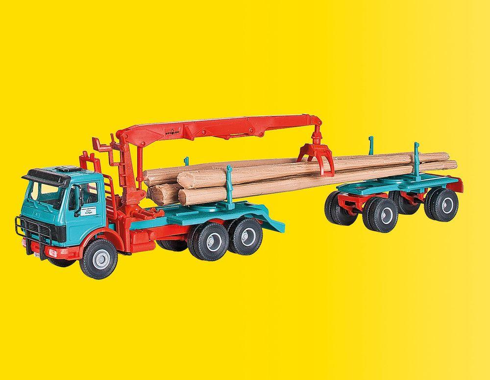 Bausatz. Vorbilddaten: MB 2226 2636, 206 261 kW/280 355 PS Dieselmotor, Typ M 120, Gesamtnutzlast 24,0 t, Gesamtgewicht 40,0 t, EPSILON Ladekran 18.78/20.78, Tragkraft 4,5 6,0 t. 6 Baumstämme liegen dem Bausatz bei.