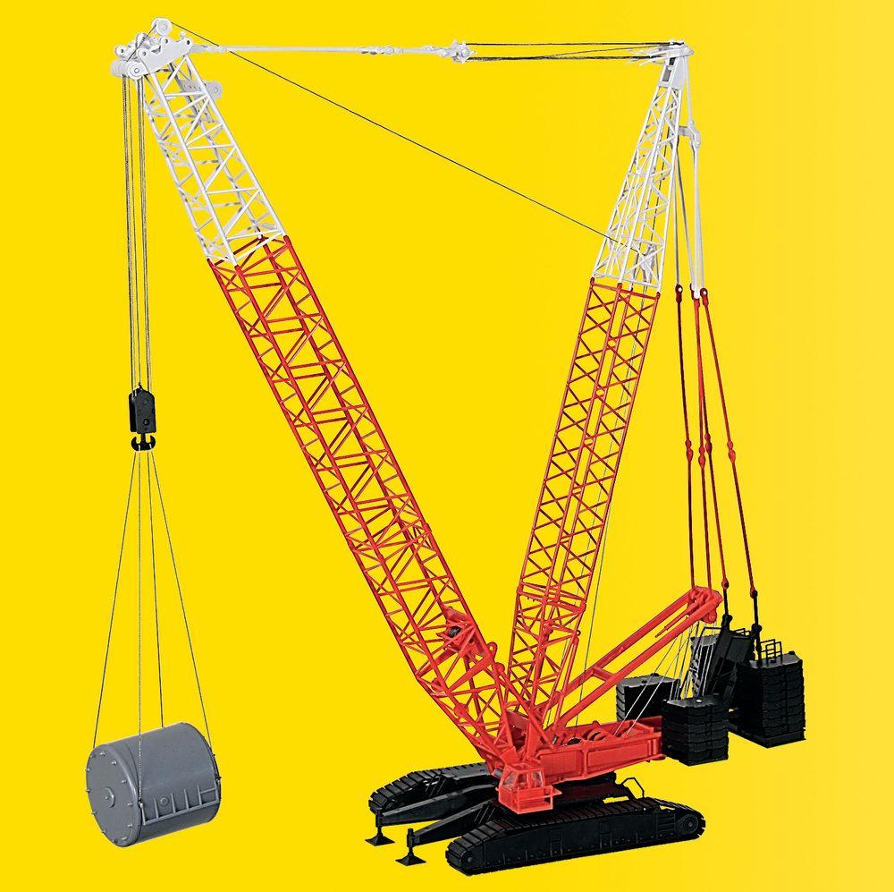 Bausatz. Vorbilddaten: MERCEDES-BENZ 10 Zylinder Dieselmotor, Typ OM 423 A, 300 kW/408 PS, Hublast max. 800,0 t, Raupenfahrwerk mit je 2 auf jeder Seite befindlichen Einzelantrieben, schwerer Hauptausleger 35,0 77,0 m, Schwebeballast max. 250,0 t. Aufgrund seiner extremen Größe sind mehrere LKW nötig, um das Vorbild dieses Raupenkrans zu transportieren. Dazu wird er in seine Einzelteile zerlegt, so dass das Raupenfahrwerk, die Gittermasten und die Ballastgewichte einzeln transportiert werden können.