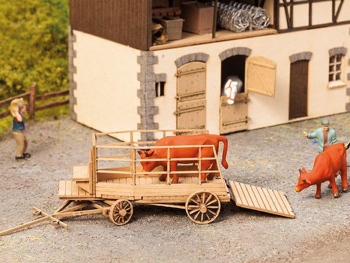 Viehtransportwagen (ohne Figuren) geeignet für Spurweite: H0 Hinweis: Beim Viehtransportwagen handelt es sich um einen sehr filigranen Modell-Bausatz für fortgeschrittene Bastler. Länge: 75.00 m...
