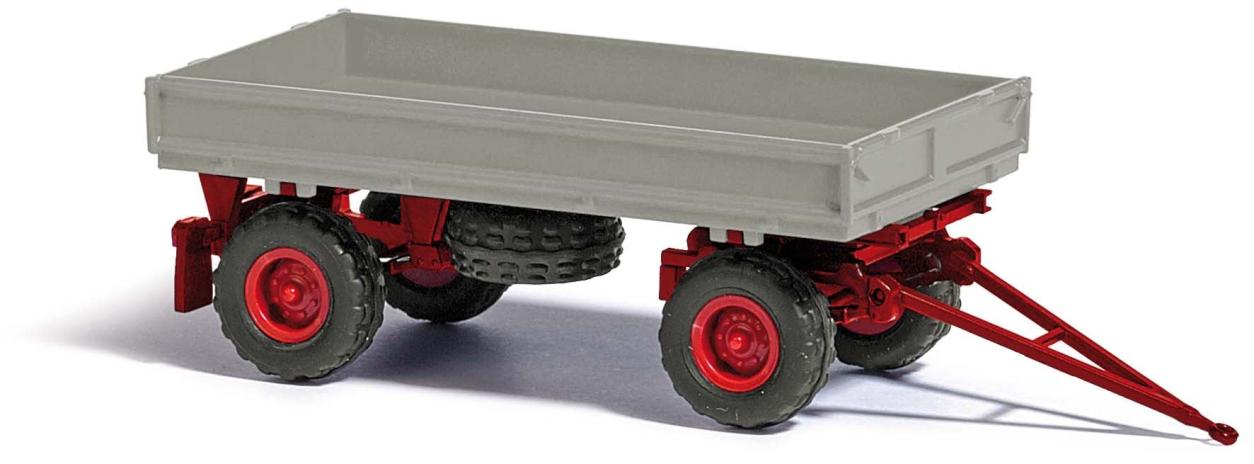 Der Zweiseiten-Kippanhänger HW 60.11 aus dem Fahrzeugwerk »Ernst Thälmann« in Lübtheen ergänzte den 8t Anhänger HW 80. Idealerweise wurde der Anhänger Traktoren oder LKW als Zugfahrzeuge angehängt, um so seinen Einsatzschwerpunkt im Bauwesen und in der Landwirtschaft nachzukommen. Die zulässige Nutzlast des Anhängers lag bei 6t bis 30 km/h, 5,4t bis 60 km/h und 5,3t bis 80 km/h. Möglich war auch der Aufbau von Bordwanderhöhungen von 300 mm. Der Anhänger konnte mit Nieder- oder Hochdruckbereifung gefahren werden. Um eine schnellere Ausschüttung zu gewährleisten, war der Anhänger mit einer motorhydraulischen Kippanlage in Kombination mit einer automatischen Bordwandbetätigung ausgestattet. <br>Diese Anlage wurde vom Zugfahrzeug aus mit Drucköl versorgt/bedient. Für ein optimales Bremsverhalten sorgte die automatische lastenabhängige Bremse, die durch eine stufenlose Regelung gesichert war. Die Anhängerkupplung war mit mehreren Anschlüssen ausgestattet, so war das Fahren mit zwei Anhängern möglich. Dank seiner einzigartigen Robustheit ist der Anhänger selbst heute noch auf Feldern anzutreffen.<br>Grauer Kippanhänger ohne automatische Seitenwandbetätigung mit rotem Rahmen und roten Felgen.