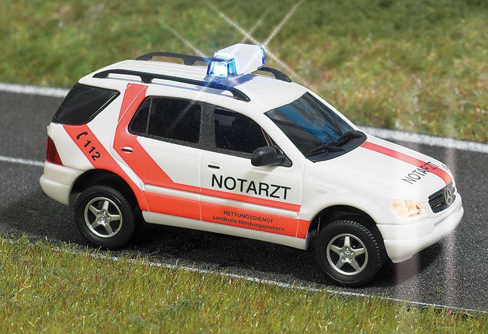 Fahrzeug-Modell, betriebsfertig mit Blaulichtbalken und elektronischer Blinkschaltung sowie leuchtenden Scheinwerfern und Rückleuchten. Anschluss an 14-16 V Gleich- oder Wechselspannung.<br><br>Der Dachbalken ist mit blauen LEDs ausgerüstet, daher sehr helles und vorbildkonformes Leuchten.