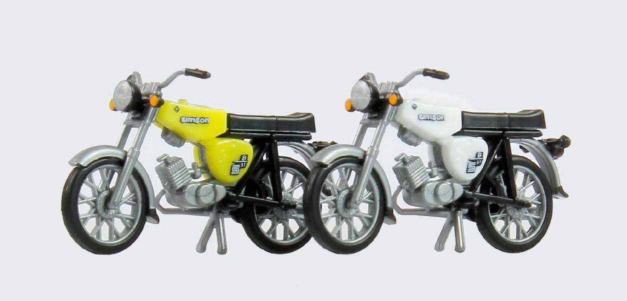 H0 Komplettmodelle 2x Simson S51, weiß und schwefelgelb