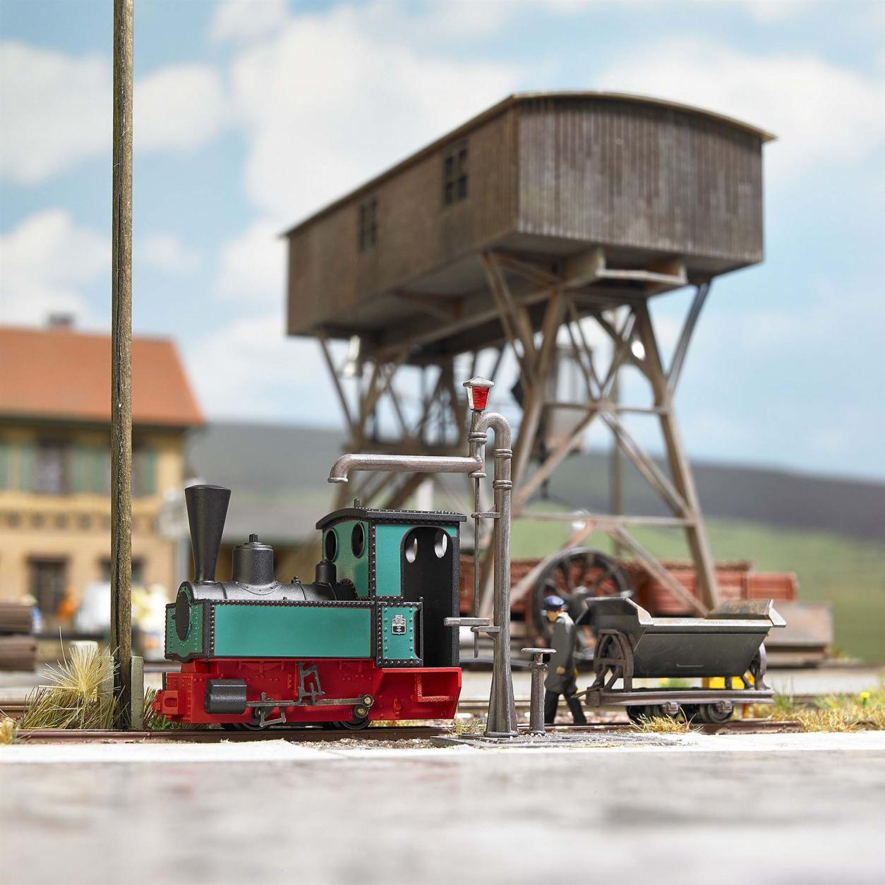 Das Vorbild stammt aus der Werkstatt des französischen Feldbahn-Pioniers Paul Decauville (1846 - 1922), der ab 1875 ein eigenes Feldbahnsystem bestehend aus Schienen, Loren und Lokomotiven entwickelte. Aufgrund ihrer Verbreitung und langen Laufzeit in verschiedenen Epochen ist diese Dampflok universell für viele Einsatzmöglichkeiten wie Waldbahn, Ziegeleibahn, Tourismusbahn, Straßenbahn, im Tagebau und als Heeresfeldbahn geeignet. Heute sind noch vier dieser robusten Lokomotiven im Original erhalten. Eine davon kann man betriebsfähig im Frankfurter Feldbahnmuseum (www.feldbahn-ffm.de) bewundern. Das Fahrzeug aus dem frühen 20. Jahrhundert hat ein Dienstgewicht von 6,5 Tonnen und eine Leistung von 20 PS. Typisch sind die großen Wasserkästen, die der Lok einen beachtlichen Aktionsradius ermöglichen. Viele Details, wie z.B. die Bauweise mit außen liegendem Rahmen, sind im Modell perfekt umgesetzt. Die filigranen Treibstangen sind sogar voll beweglich ausgeführt. Neue (größere) Wagen für die verschiedensten Transportzwecke runden diese Neuheitenentwicklung ab, wobei die Dampflok natürlich alle Wagen aus dem Busch Feldbahnsortiment ziehen kann.