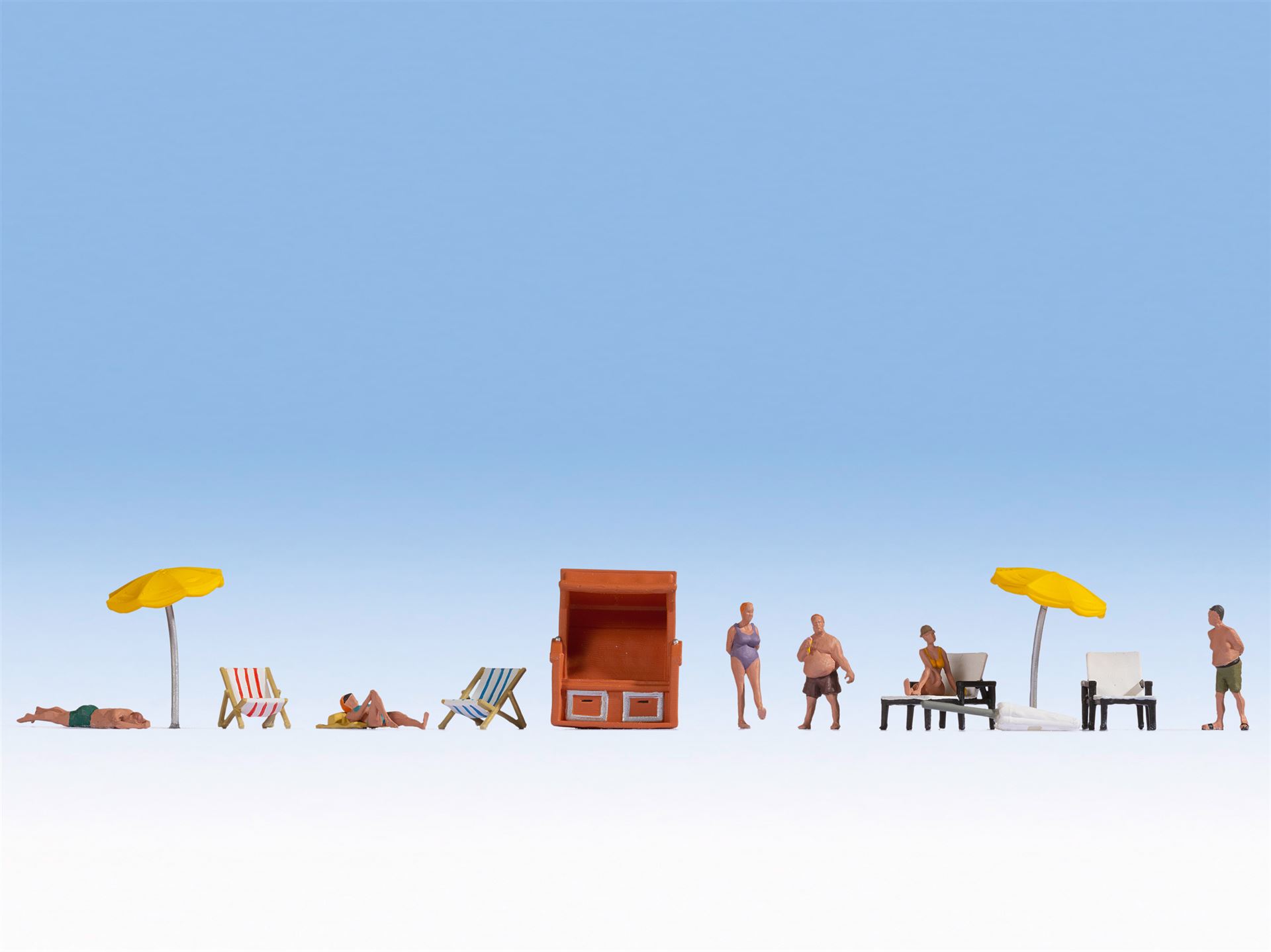 6 Figuren, 1 Strandkorb, 2 Liegestühle,