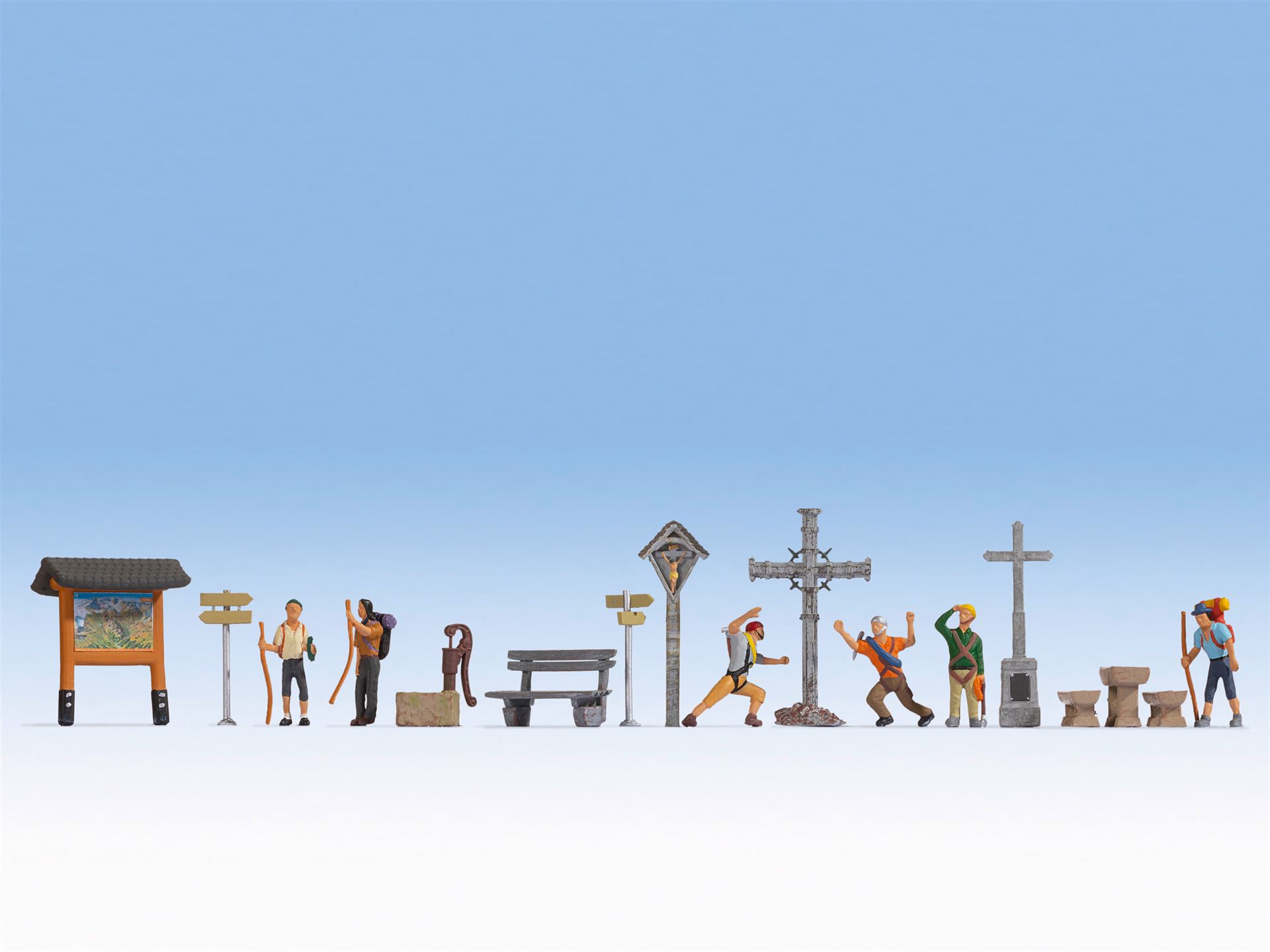 Figuren-Themenwelt In den Bergen Inhalt: 6 Figuren, 1 Gipfelkreuz, 1 Brunnen, 2 Wegkreuze, 2 Wanderwegweiser, 1 Holzbank mit Lehne, 1 Tisch, 2 Bänke, 1 Wandertafel mit Karte geeignet für Spur:...