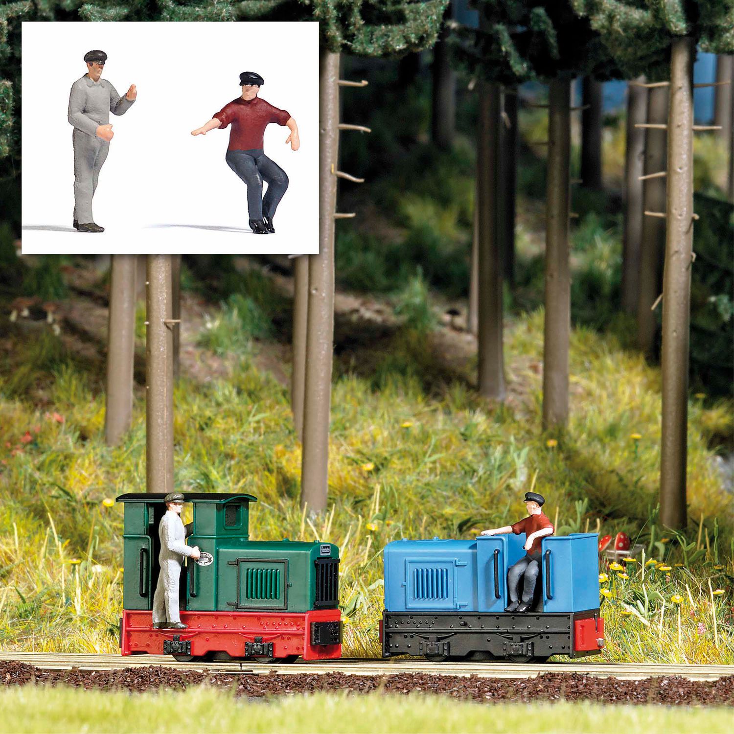 Stehender und sitzender Lokführer für Feldbahnlokomotiven.