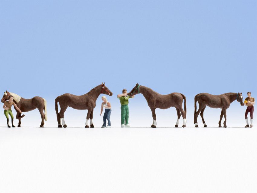 Pferdepflege H0 4 Figuren + 4 Pferde Hersteller: Noch 15632