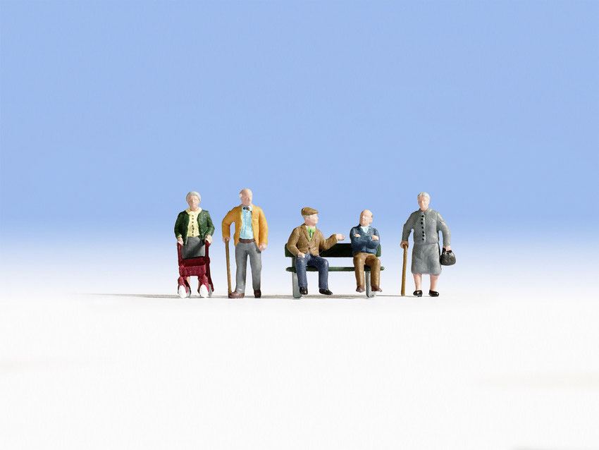 Senioren 5 Figuren mit Bank H0 Änderungen der Zusammenstellung, Farb- und Formvarianten vorbehalten. Hersteller: Noch 15551