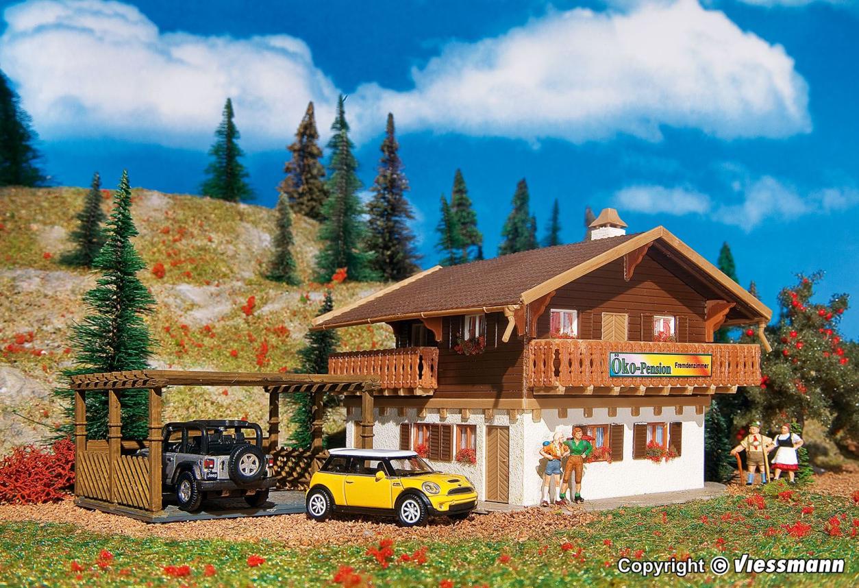 Die Öko-Pension wartet mit alpenländischer Gastfreundschaft auf. Im Carport können 2 Autos untergebracht werden. Maße: L 17,5 x B 12 x H 8,2 cm.