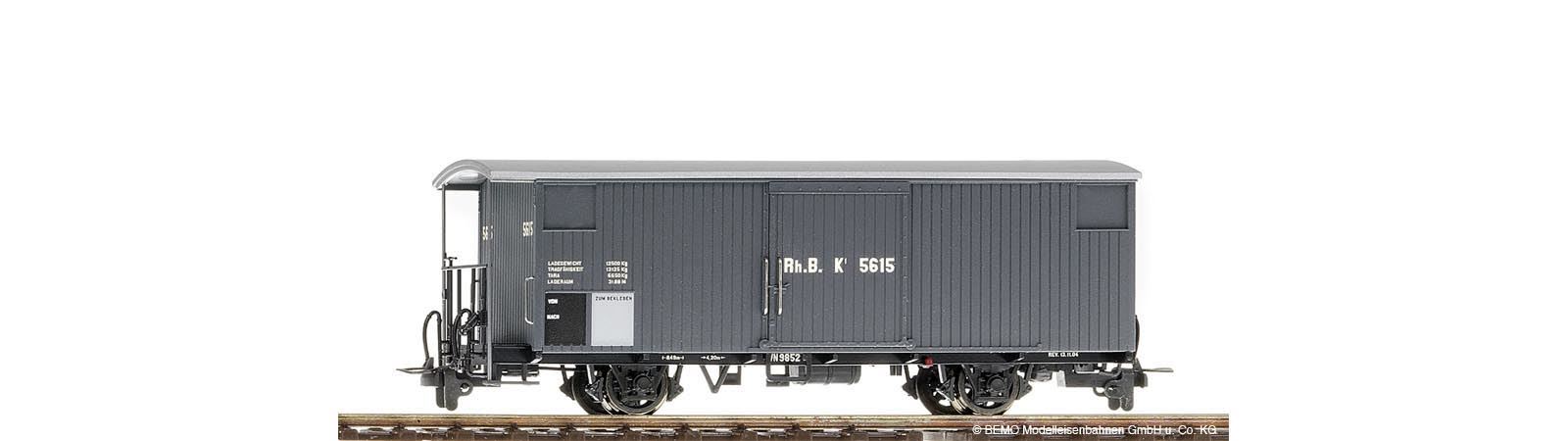 Mit dem weiteren Ausbau des Streckennetzes stieg auch der Bedarf an neuen Fahrzeugen für den Gütertransport. Zwischen 1911 und 1913 beschaffte die RhB unter anderem 115 gedeckte Güterwagen der Gattung K1 mit Holzbeplankung. Nach Schäden beim Beladen erhielten einige Wagen neue Türen mit horizontal angeordneten Brettern - damit mußte man im Fall einer Beschädigungen nur einzelne Bretter austauschen. 1949/50 rüstete man zahlreiche Fahrzeuge auf Stahlaufbauten um, ab Mitte der 70er Jahre erfolgte eine zweite Modernisierungsphase, nach der nur noch wenige Fahrzeuge mit Holzkastenaufbau im Dienst verblieben. 2004 nahm der Club 1889 den Gbk-v 5615 als RhB-Nostalgiegüterwagen wieder in Betrieb.