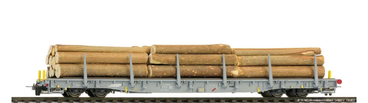 H0m RhB R-w 8218 ACTS-Tragwagen mit Holzladung Ep.V-VI Formneuheit Als dritte und modernste Variante bieten wir den formneuen ACTS-Tragwagen auch als Holztransportwagen an. Hersteller: Bemo