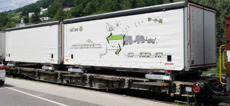 Für die Nachbildung des Güterzuges produzieren wir erstmals neue Schiebeplanen-Wechselbehälter sowie das im Modell funktionslose ContainerMoversystem der Firma Innovatrain AG.