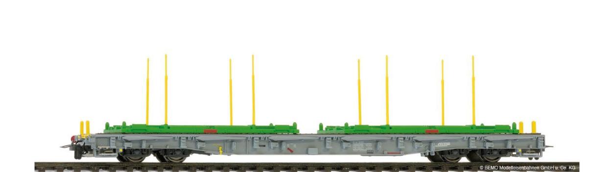 Wir bieten diese sowohl auf Wagen R-w als auch Niederflurwagen Sbk-v mit Holzladung an, wobei der Sbk-v 7707 eine spezielle RhB-Werbebeschriftung trägt.