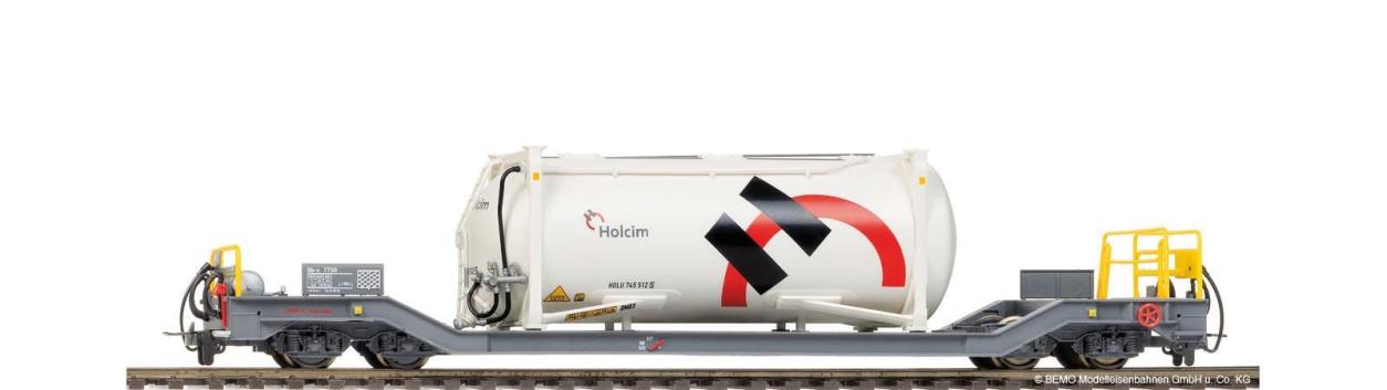 H0m RhB Sbk-v 7702 Containerwagen "Holcim" Ep.V-VI LüP: 183 mm Die Produktion der auf Niederflur-Drehgestellwagen transportierten Zementsilobehälter beinhaltet 2013 drei Varianten: Sbk-v 7710 mit...