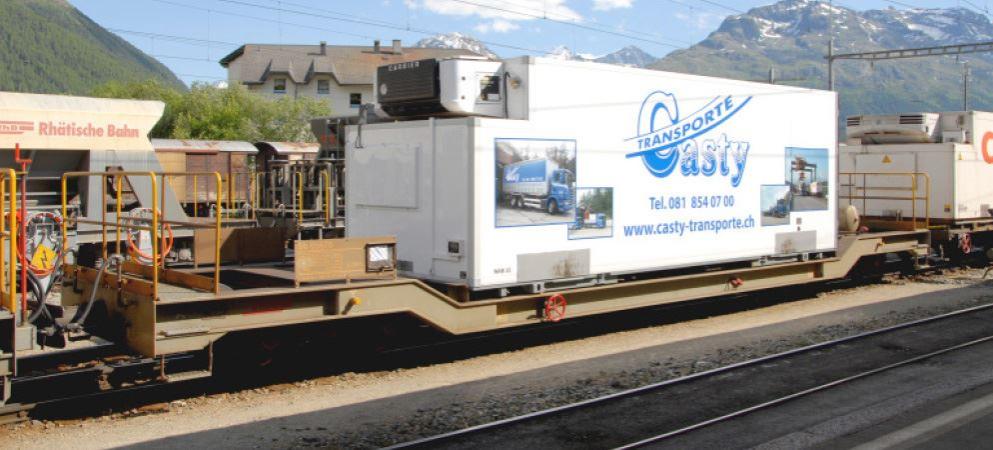 H0m RhB Sbk-v 7705 mit Kühlcontainer "Casty" Hersteller: Bemo