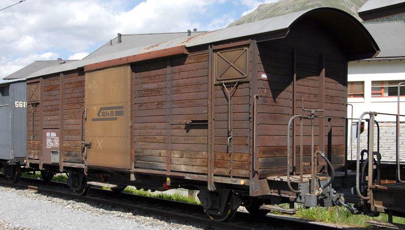 H0m RhB WN 9884 Nostalgiewagen braun Ep.VI LüP: 98,2 mm Nostalgiewagen Die immer geringer werdende Bedeutung der Stückgüter läßt den Bedarf an den zweiachsigen gedeckten Güterwagen zugunsten vo...