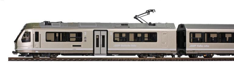 Antrieb durch 5-Pol-Motor auf alle Achsen des Motorwagens, alle Wagen mit Innenbeleuchtung (Aux1), in den Mittelwagen ist erst nach Einsetzen eines Funktionsdecoders auf der Lichtleiterplatte schaltbar, Stirnbeleuchtung fahrtrichtungsabhängig 3x weiß/ 2x rot (F0), Beleuchtung des Graubünden-Wappens (mit Stirnlicht vorne/ hinten gekoppelt) beleuchtete Zugzielanzeige "RE Davos Platz" auf den Stirnseiten, beim Digitalmodell digital schaltbar (Aux2) mit Digitalschnittstelle Next18 nach NEM 662 und Stromaufnahme über alle Radsätze Digitalschnittstelle im Motor- und Steuerwagen ist von außen zugänglich Mindestradius 330mm Kupplung der Fahrzeuge mittels Bügelkupplung wie beim AGZ, Kurzkupplung nachrüstbar alle Fahrzeuge mit detaillierter Inneneinrichtung und Unterbodengestaltung