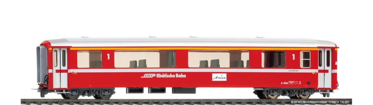 H0m RhB A 1256 Salonwagen Ep.VI LüP: 195 mm Anfang März 2012 tauschte der Salonwagen sein attraktives blaues Arosa-Farbkleid gegen ein rotes ein. Hersteller: Bemo
