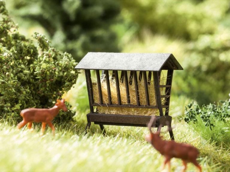 Echt-Holz Bausatz. Achteckige Aussichtsplattform (115 x 44 mm, 43 mm hoch) mit rundum laufendem Geländer, Aufgang mit Treppe und Aussparung im Boden mit »hindurchwachsender« Fichte (Fertigmodell, 170 mm hoch). Besucherterrasse (50 x 42 mm, 41 mm hoch) mit Treppenaufgang, integrierter Futterraufe und Tränke für die Wildfütterung. Tür zum Öffnen. Futterunterstand mit Giebeldach (52 x 28 mm, 33 mm hoch). <br><br><strong>Thema »Wildpark«</strong><br>In wunderschöner Natur die heimische Tierwelt hautnah erleben - Wildparks sind ein beliebtes Ausflugsziel, um Hirsche, Rehe, Steinböcke, Wildschweine, Wisente, Wölfe, diverse Vogelarten u.v.m. in ihrem natürlichen Umfeld zu beobachten. Sie liegen häufig in Naturschutzgebieten. Oftmals ergänzen Streichelzoos mit Kleintieren und Spielplätzen das Freizeitangebot. Liegt der Schwerpunkt bei afrikanischen Tieren wird auch die Bezeichnung Safaripark verwendet. <br><br>Die Vielfalt dieses Themas wird von Busch mit der Wildpark-Serie perfekt in Szene gesetzt. Die Gebäude und Zubehörartikel, vom Kassenhaus bis zum Wildpark Ausgestaltungs-Set, bieten heimatlichen und exotischen Tierarten gleichermaßen eine adäquate Behausung. Nahezu unendlich ist der Variantenreichtum, der sich für Modellbahnanlagen und im Dioramenbau bietet. Auch ein Vogelpark, ein kleiner Zoo oder Tierpark kann realistisch dargestellt werden. <br><br>Folgende Artikel sind aus Serie »Wildpark« lieferbar:<br><br><ul><li>1580 Kassenhaus</li><li>1581 Eulenvoliere</li><li>1582 Kleintierstall</li><li>1583 Gehege</li><li>1584 Offenstall!</li><li>1585 Aussichtsturm</li><li>1586 Toilettenhaus!</li><li>1587 Streichelzoo</li><li>1588 Aussichtsplattformen</li><li>1589 Wildpark-Ausgestaltungs-Set</li></ul><br><br>Zudem befinden sich im Busch-Sortiment bereits viele passende Artikel, die das Thema hervorragend ergänzen wie z.B. Stahlrohrzaun 1022 und Gartenzaun 1020, Spielplatz 1458, Spielhäuser 1486, Spielburg 1487 oder der »Fliegende Storch« 5481, der mit Motorkraft sein Nest umkreist.