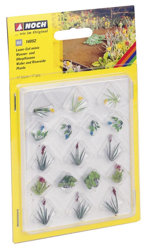 Laser-Cut minis+ sind super-realistische Miniaturpflanzen! Laser-Cut minis+ sind eine Top-Innovation für den Modell-Landschaftsbau. Noch nie war es einfacher super-realistische Blumenbeete, Gärten oder Schrebergärten in die Modell-Landschaft zu zaubern. Laser-Cut minis+ sind komplett fertig aufgebogene Laser-Cut minis Pflanzen, die teilweise zusätzlich mit farbigem Blütenflock beflockt sind. Die Mini-Pflanzen werden nur noch in die Modell-Landschaft eingeklebt. 17 Pflanzen (Hechtkraut, Pestwurz, Wasserlilien, Bach-Nelkenwurz, Schilf)
