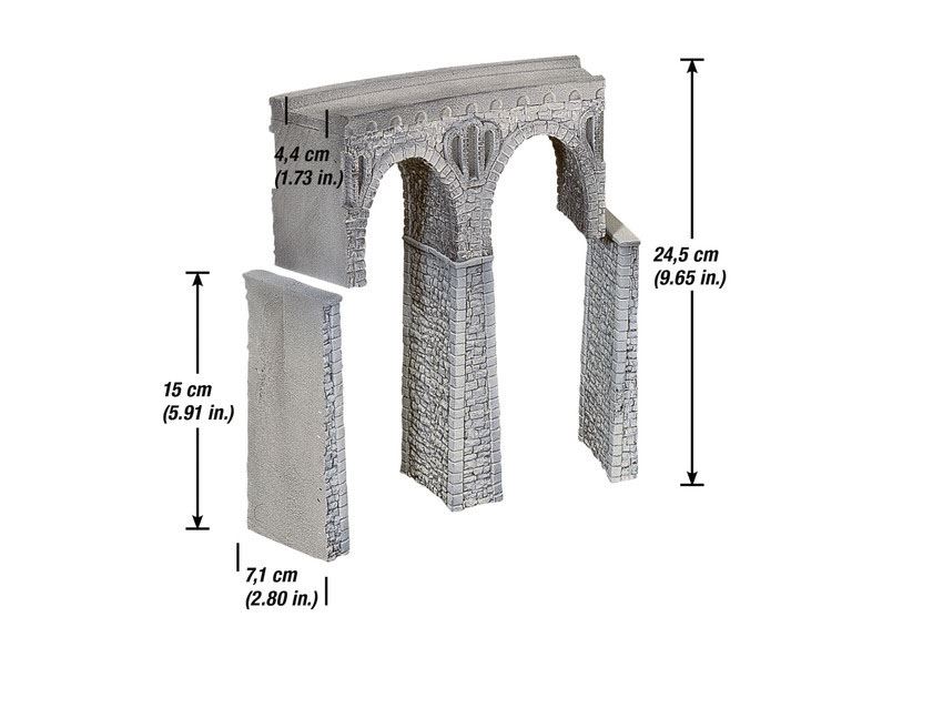 Hinweis: Die gebogenen Bruchsteinviadukte sind für alle H0-Gleissysteme inklusive MÄRKLIN C-Gleis geeignet.