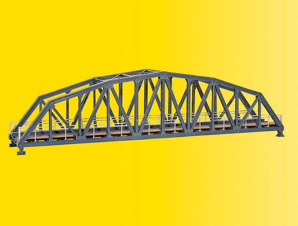 Bausatz. Brückenköpfe nicht enthalten. In doppelter Ausführung ist ein zweigleisiger Aufbau möglich. Für alle gängigen Gleissysteme geeignet. L 46,0 x B 8,0 x H 11,6 cm / Fahrbahnhöhe 2,0 cm Schwie...