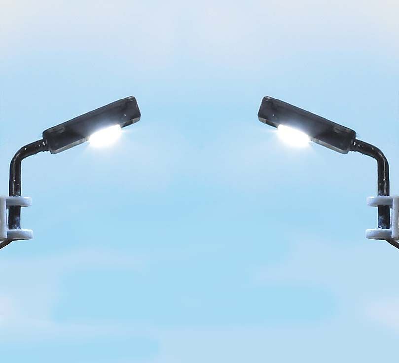 Zwei Wandlampen mit Neon-LEDs. Einfache Montage an Hauswänden. Kann auch zur Ergänzung der Gittermast-Lampe 4150 verwendet werden.
