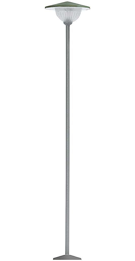 Universell einsetzbare Platzleuchte mit Metallmast. Auch für den Bahnhofsbereich und Industriegelände geeignet.<br><br>Realistische Nachbildung des weißen Lichtes, das im Original durch Quecksilberdampflampen erzeugt wird, durch weiße Neon-LED. Fertigmodell. Höhe: ca. 86 mm.