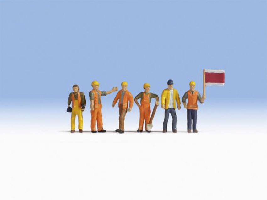 Wer eine Modellbahnanlage baut und darauf eine Szene mit einem Zug gestalten möchte, greift am besten zu den Gleisarbeitern von NOCH. Sie machen das ganze Bild noch realistischer.