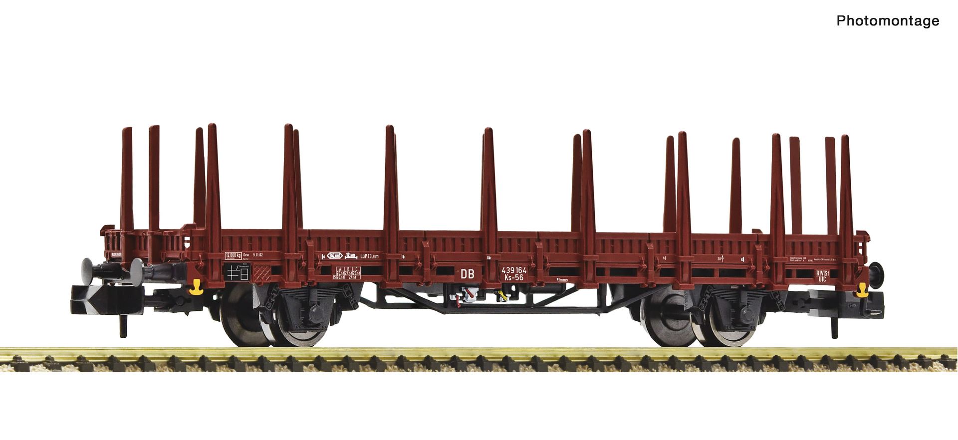 N Steckrungenwagen, Gattung Rlmms 58, der Deutschen Bundesbahn. Ep.III Ausführung mit runden Puffern Durch die bei diesen Wagen rundherum an den Seiten befestigten Rungen ist die Ladung gegen V...
