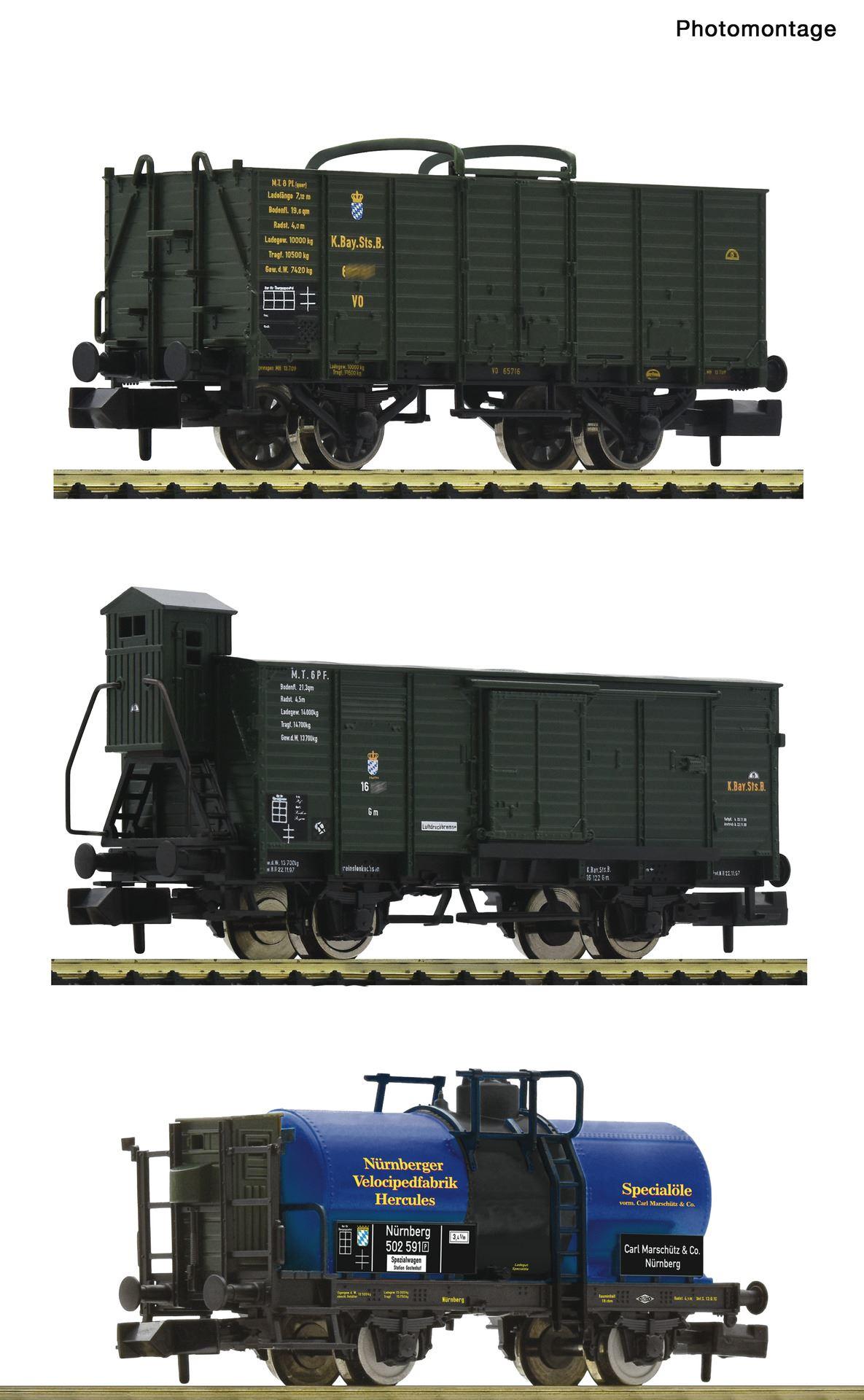 N Wagenset mit drei Güterwagen der der Königlich Bayerischen Staats-Eisenbahnen. Ep.I