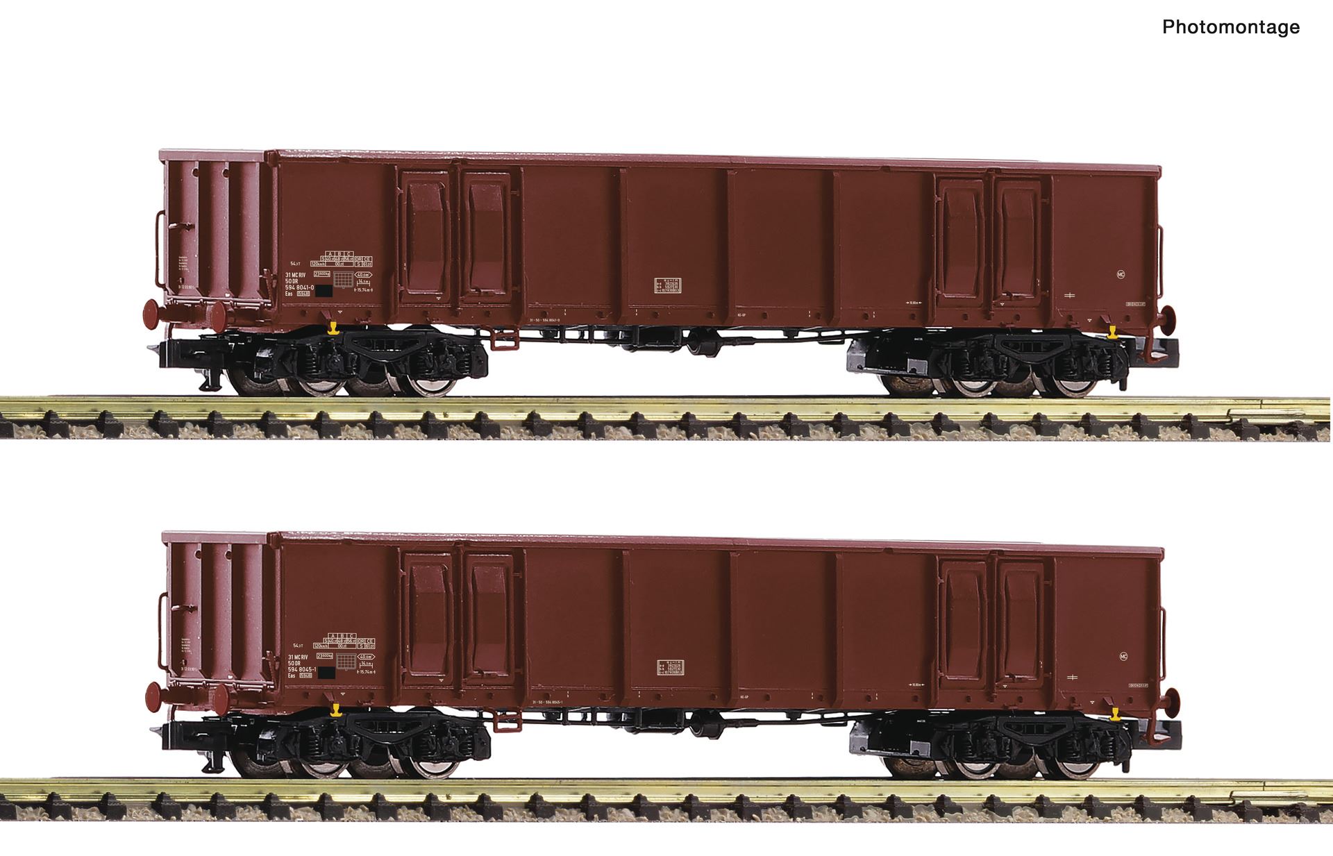 N Wagenset mit zwei vierachsigen offenen Güterwagen, Gattung Eas 5948, der Deutschen Reichsbahn Ep.IV Neukonstruktion 2022! Fein detaillierte Modelle mit separat angesetzten Griffstangen und Au...