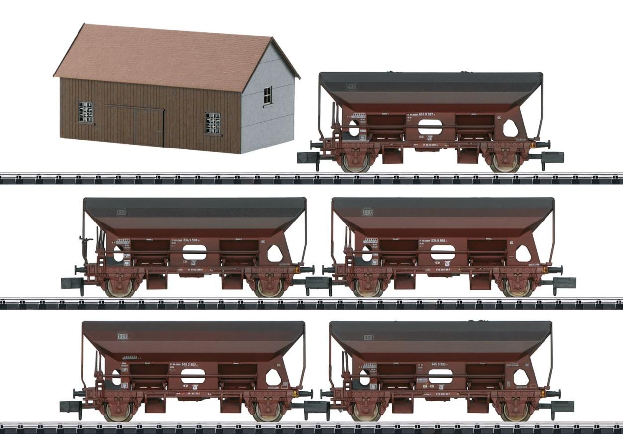 Vorbild: 5 Selbstentladewagen Fcs 090 und Fcs 092 der Deutschen Bundesbahn (DB). Einsatz: Für nässeunempfindliche Güter.