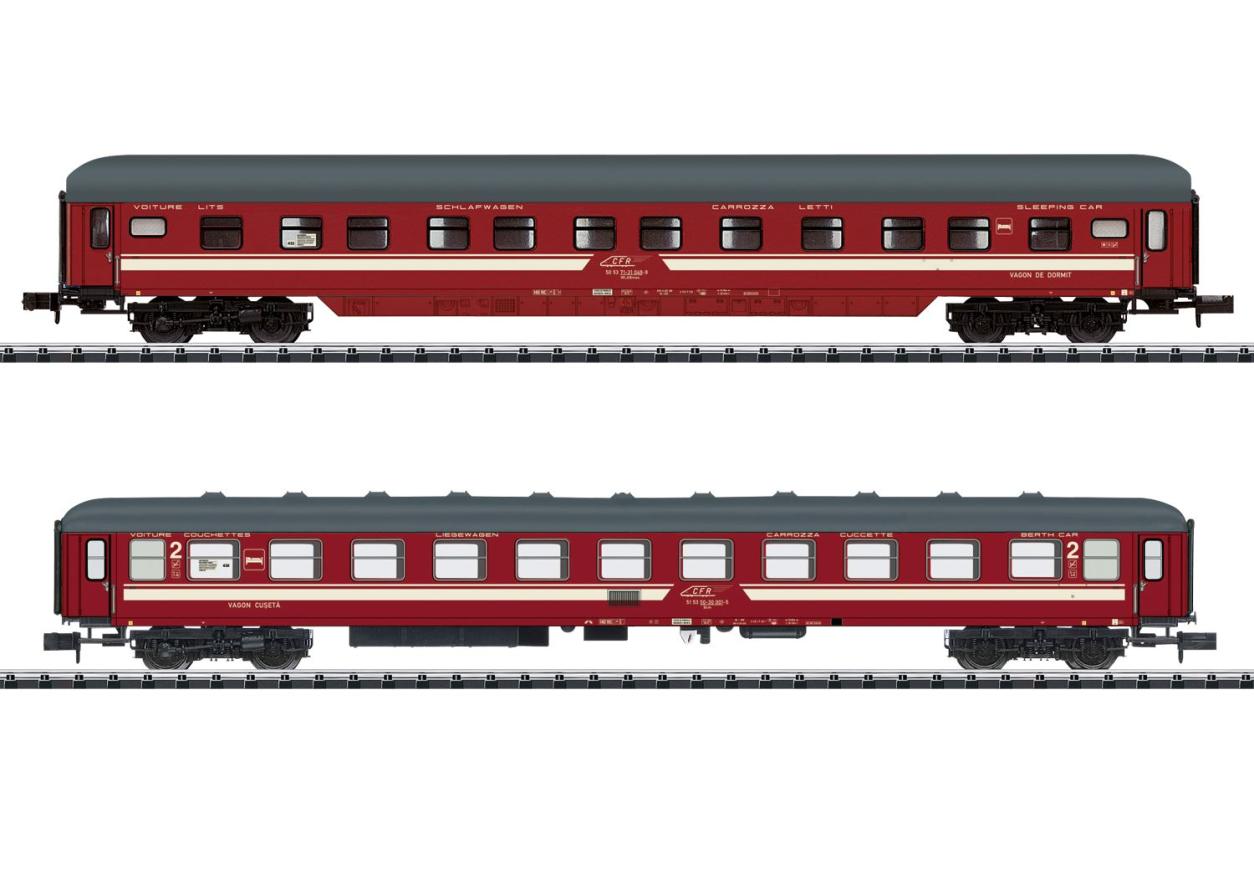 Vorbild: 1 Schnellzugschlafwagen WLABmee und 1 Liegewagen Bcm der C#ile Ferate Române (CFR).Einsatz: Hochwertiger Fernverkehr, hier im EC Venezia um 2009.<br>Modell: Mit Kinematik für Kurzkupplung. Vorbereitet für den nachträglichen Einbau einer Innenbeleuchtung.Gesamtlänge über Puffer 330 mm.<br><br>Die dazu passende Innenbeleuchtung: 66616 LED-Innenbeleuchtung.<br><br>Das Wagen-Set lässt sich mit de Wagen-Sets 18252, 18253 und 18255 vorbildlich verlängern.