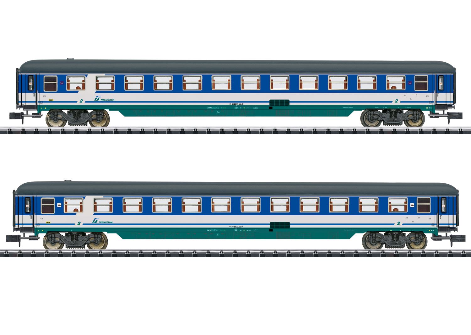 Vorbild: 2 Schnellzugwagen der Bauart UIC-X (Bm) der Italienischen Staatseisenbahnen (FS).Einsatz: Hochwertiger Fernverkehr, hier im EC Venezia um 2009.<br>Modell: Mit Kinematik für Kurzkupplung. Vorbereitet für den nachträglichen Einbau einer Innenbeleuchtung.Gesamtlänge über Puffer 330 mm.<br><br>Die dazu passende Innenbeleuchtung: 66616 LED-Innenbeleuchtung.<br><br>Das Wagen-Set lässt sich mit de Wagen-Sets 18252, 18253 und 18254 vorbildlich verlängern.