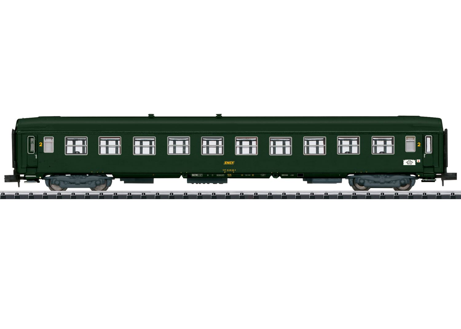 Vorbild: Schnellzugwagen 2. Klasse (B10) der Französischen Staatseisenbahn (Société nationale des chemins de fer français / SNCF). Im Zustand um 1970 mit dem Zuglauf Nizza - Paris.<br>Modell: Mit Kinematik für Kurzkupplung. Vorbereitet für den nachträglichen Einbau einer Innenbeleuchtung.Länge über Puffer 153 mm.<br><br>Die dazu passende Innenbeleuchtung:66616 LED-Innenbeleuchtung.