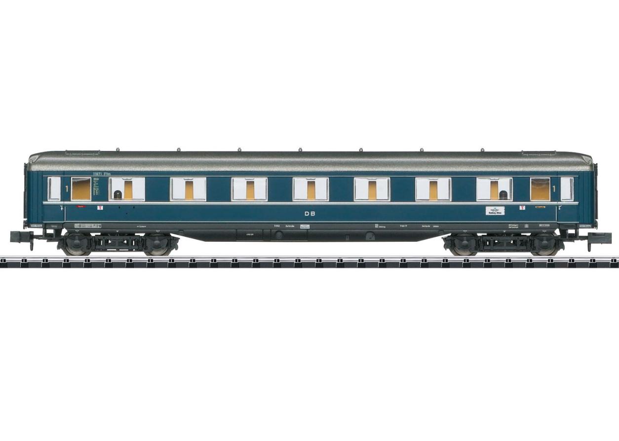 Vorbild: Schnellzugwagen 1. Klasse A4üe (windschnittige Bauart ABü-38) der Deutschen Bundesbahn (DB). Zuglauf: F 41 Senator Frankfurt (Main) – Kassel - Hannover - Hamburg-Altona um 1957.<br>Modell: Wagen mit Kinematik für Kurzkupplung. Vorbereitet für den nachträglichen Einbau einer Innenbeleuchtung.Länge über Puffer 136 mm.Die dazu passende Innenbeleuchtung: 66616 LED-Innenbeleuchtung.<br><br>Einen vorbildgerechten Zug erhalten Sie mit der Lokomotive der Baureihe V 200 Artikelnummer 16225 und mit dem Schnellzugwagen-Set 18259. Hersteller: Trix