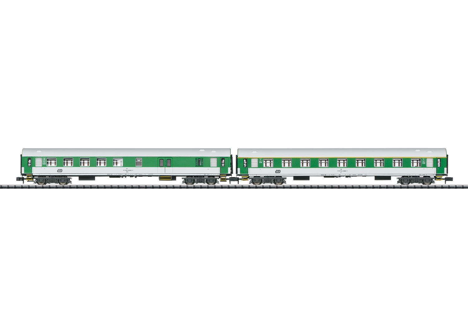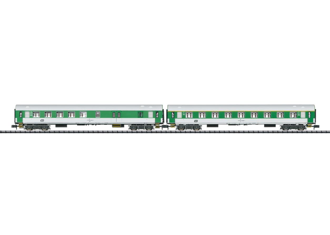N Schnellzugwagen-Set Y/B CD Ep.V Vorbild: 1 Schnellzugwagen 2. Klasse mit Gepäckabteil Bauart Y-B/70 und 1 Schnellzugwagen 1. Klasse der Tschechischen Eisenbahn ( eské drahy D). Baujahr ab 1968....