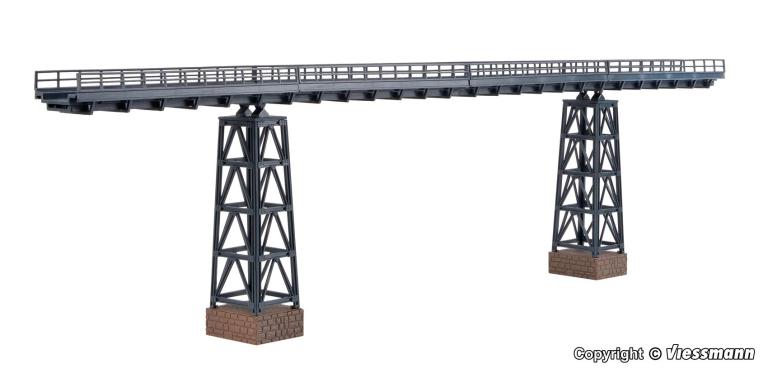 Dieses Viadukt ist ein monumentales Bauwerk. Es wurde in den 30er Jahren errichtet, um den Spitzkehrbahnhof Michaelstein in der Nähe von Halle zu umgehen. Aufgrund seiner Länge ist es besonders zur Überbrückung weiter Täler geeignet. Maße: L 44,5 x B 3,4 x H 11,8 cm, Durchfahrtshöhe: 10,2 cm, Durchfahrtsbreite: 10,8 cm, Fahrbahnhöhe: 10,9 cm, Farbahnbreite: 1,7 cm. Für alle gängigen Gleissysteme geeignet.