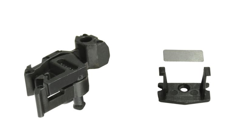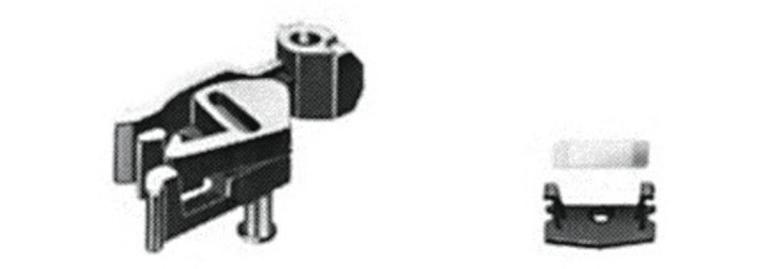 PROFI-Kupplung mit Blatt-Richtfeder und Abdeckplatte (mit langen Haltestegen). Zum Umbau von zwei- und dreiachsigen FLEISCHMANN-Wagen mit einer Länge über Puffer von max. 70 mm, die mit der Standard-Kupplung 9521 ausgerüstet sind. Gegenüber der Kupplung 9541 ergibt sich ein nochmals verkürzter Fahrzeugabstand. Hersteller: Fleischmann
