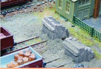 An alten und stillgelegten Bahnstrecken heute immer noch zu finden: Prellböcke. Diese Variante ist aus Holzschwellen gebaut. Der urige, verwitterte Charakter ist ein Hingucker auf jedem Diorama, jedem Modul oder jeder Anlage.