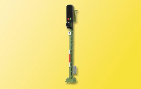 Signal der Einheitsbauart. Filigraner Messingmast in originalgetreuer Lackierung. Mit Steckfuß für einfache Montage. Mit 2 LEDs, wartungsfrei. Signalbilder Hp0 und Hp1. Passendes Steuermodul: Art. ...